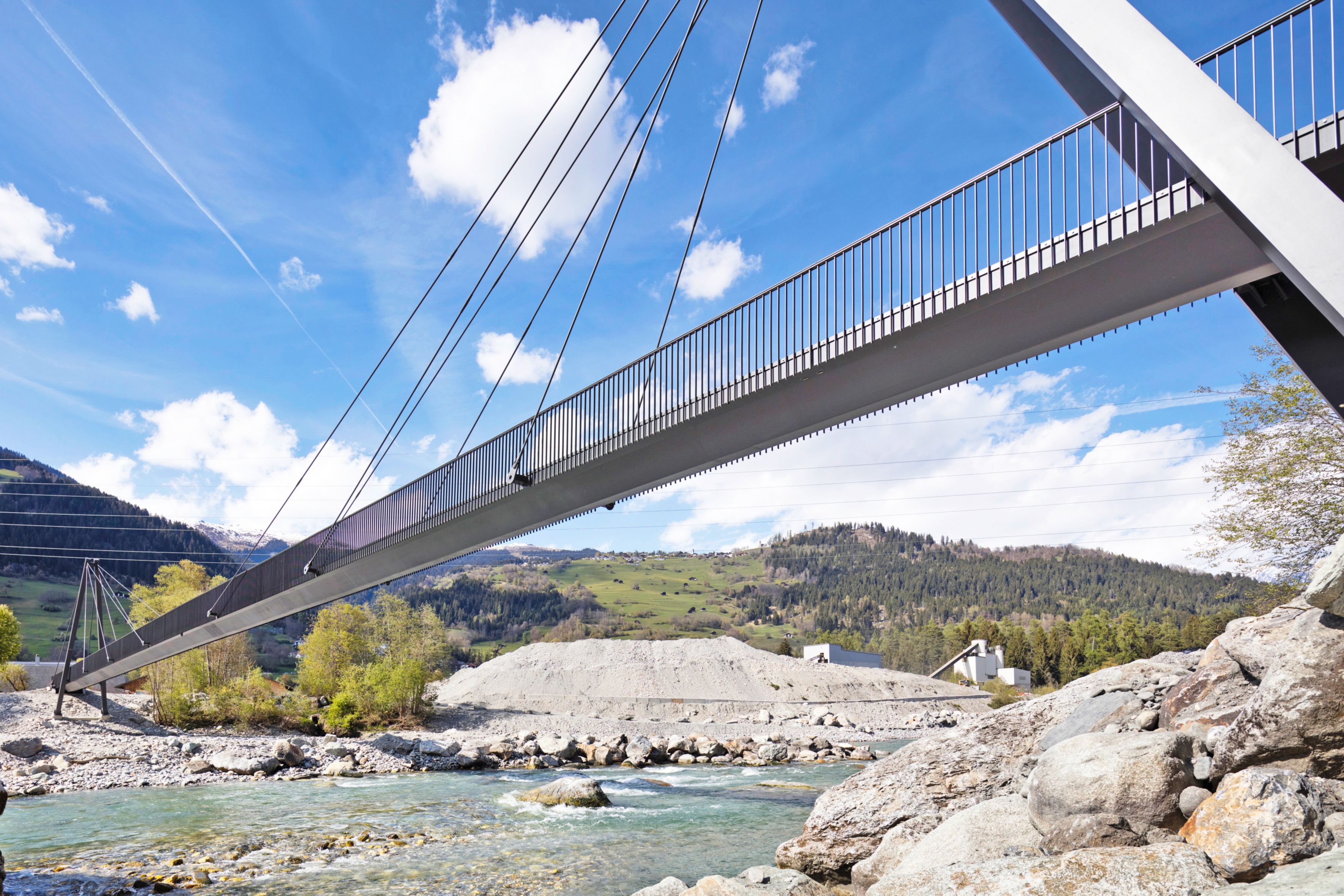 der bau der neuenfussgängerbrückeZwischen castrisch和Schluein Wurde Vom Verein“ Die Rheinschlucht / Ruinaulta”,Dem abwasserverband“ Gruob” Sowie den sowie den beiden den beiden beiden beiden territorialgememineialgememineialgememinden iLanz / gllion illion inlion in glion undSchluein underterstul untersterstun untersterstun。der Vorderrhein um Ein Elegantes和Filigranes Bauwerk Reicher。BrückenüberwindenHindernisse。und so gibt es zwischender gemeinde schluein und der ilanzer fraktion castrisch definitiv keine hindernisse mehr。MitDembrückenstegWurde Zwischen Ilanz und Reichenau bereits Diefünftelangsamverkehrsüberquerquerquerquerquerquerquerquerquernevorderrheins realisiert。DieKostenFürDasBauwerk Belaufen Sich Auf 210万弗兰肯。Bei der Knapp 100米Langen und Zwei Meter BreitenSchrägseilbrückeWurden Unter Anderem 95 Tonnen Stahl stahl und 130 Kubikmeter Beton verbaut。Durch Ihre Leicht Nach Vorne Geneigten Pylone erhielt Diebrückeihren unverwechselbaren charakter。Diefussgängerbrücke麻省理工组织的整合商Abwasserleitung wurde durch dasingenieurbürocasuttwyrsch Zwicky Zwicky ag entworfen und projektiert。