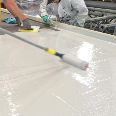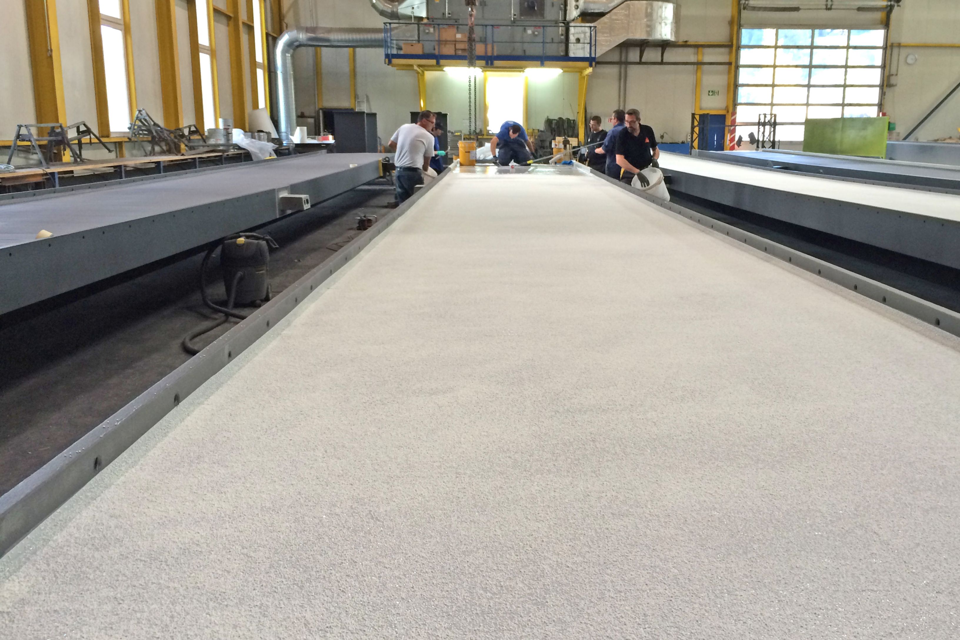 Das Korrosionsschutzsystem wurde in Abstimmung mit den planenden Ingenieuren, dem Stahlbauer, der technischen Beratung der Sika Schweiz AG und abgestimmt auf die Umgebungskriterien nach der Norm SN-EN ISO 12944-2 durch die renomierte Stahlbaufirma Toscano Stahlbau AG, werksseitig im Spritzverfahren aufgetragen.