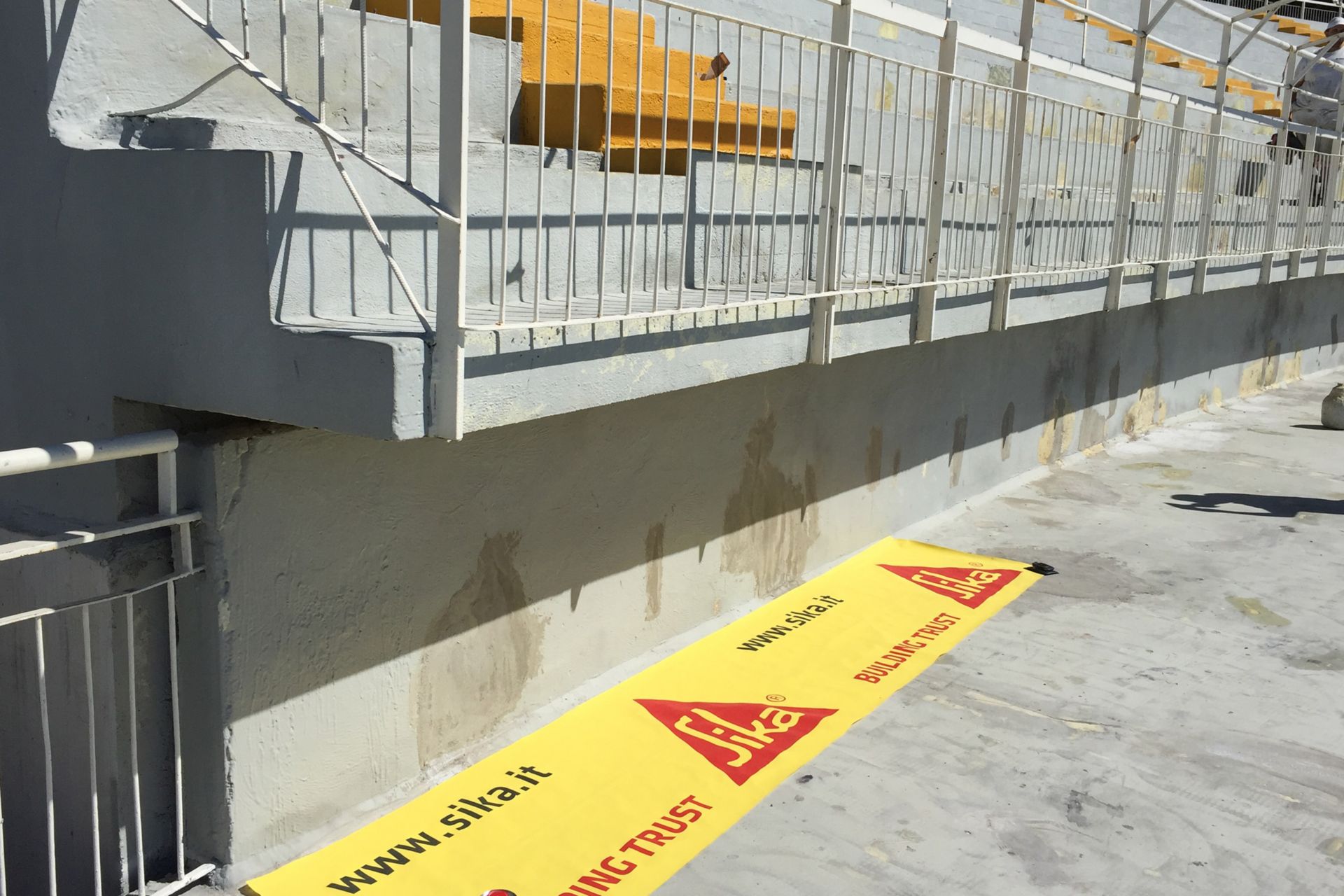 Durante Le Fasi Del Trattamento Impermeabilizzante Conla Poliurea PuraSikalastic®-835 I,La Commbiteza Ha Particorarmente Applezzato L'Efficacia E L'Efficienza del Sistema Buposto da锡卡,在熟人Il Rapidissimo indulimento della Membrana Che,Dopo Solo Pochi Secondi,è渗透e calpestabile。